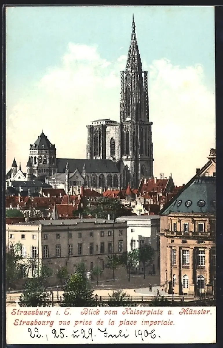 AK Strassburg i. E., Vue prise de la place impériale vers la cathédrale