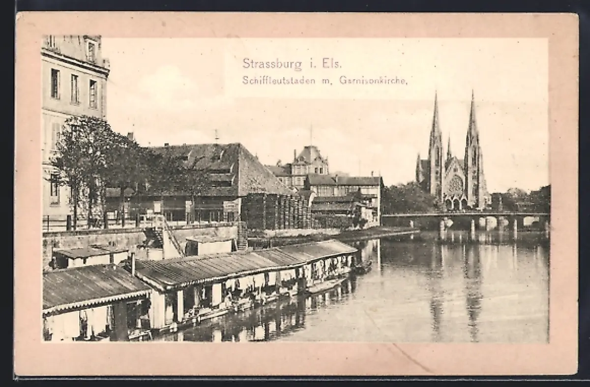 AK Strassburg i. Els., Schiffleutstaden m. Garnisonkirche
