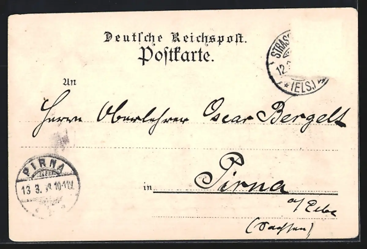alte Ansichtskarte, gelaufen, Briefmarke entfernt, guter Zustand