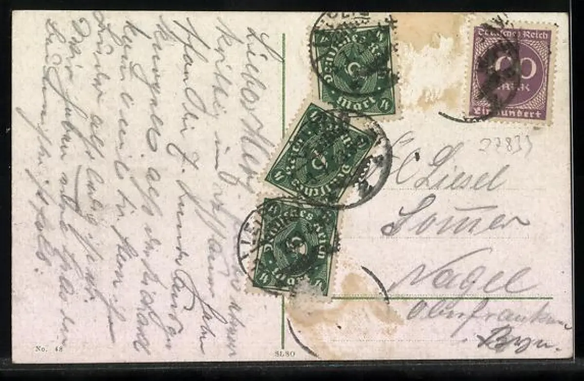 alte Ansichtskarte, gelaufen 1923, Briefmarke entfernt, rückseitig Oberflächenschaden, guter Zustand