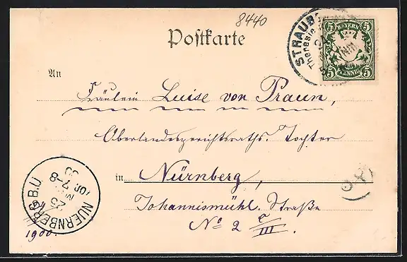 alte Ansichtskarte, gelaufen 1900, guter Zustand