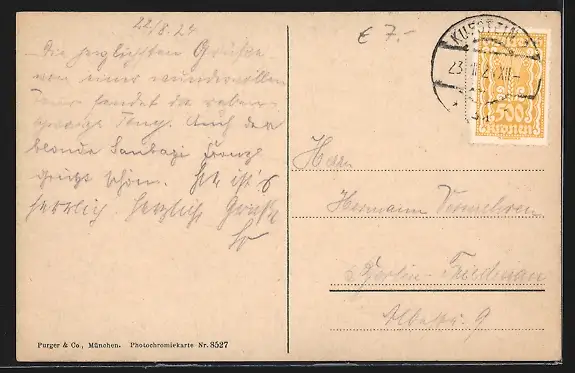 alte Ansichtskarte, gelaufen 1924, Eckknicke re. oben, guter Zustand