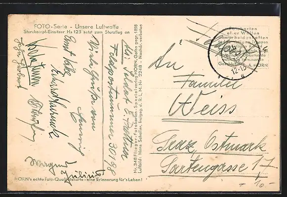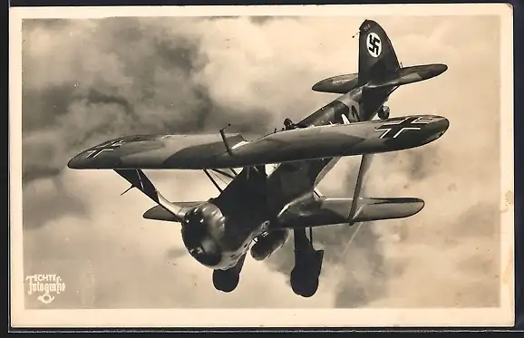 AK Sturzkampf-Flugzeug Hs 123 setzt zum Sturzflug an,