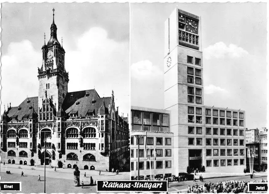 Ansichtskarte Stuttgart zwei Abb. - Altes und Neues Rathaus, Erhaltung I-II ungelaufen, um 1970 Verlag: Hans Rehn, Bürobedarf Stuttgart Der