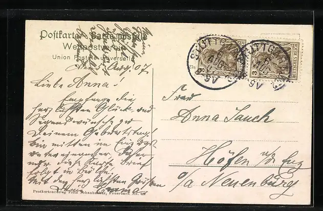 alte Ansichtskarte, gelaufen 1907, guter Zustand