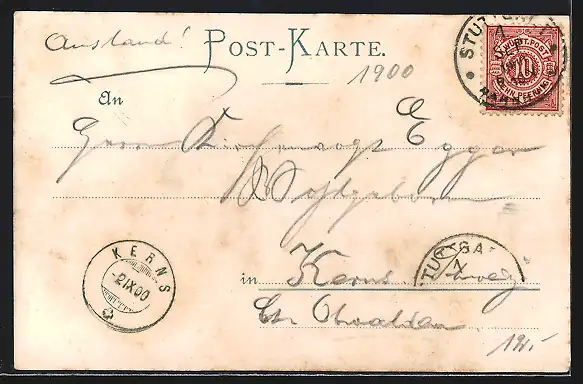 alte Ansichtskarte, gelaufen 1900, guter Zustand