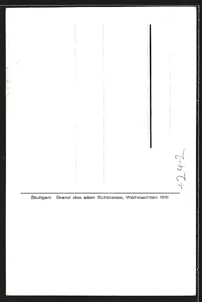 AK Stuttgart, Brand des alten Schlossse, Weihnachten 1931, Denkmal