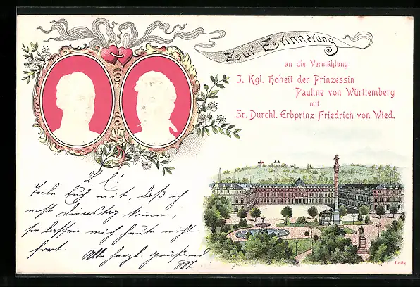 AK Stuttgart, Hochzeit zwischen Prinzessin Pauline von Württemberg und Erbprinz Friedrich von Wied
