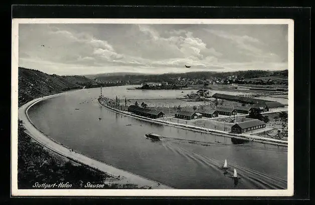 AK Stuttgart-Hofen, Blick auf den Stausee