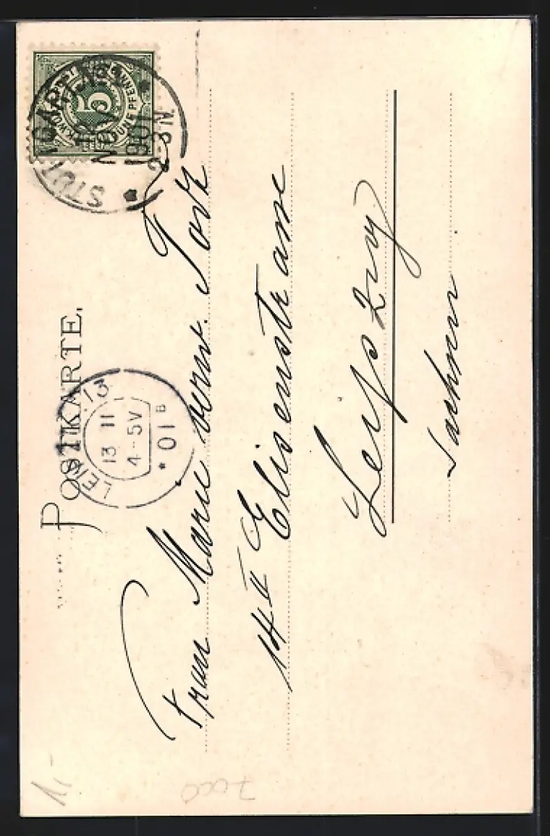 alte Ansichtskarte, gelaufen 1901, Stempelspur, guter Zustand