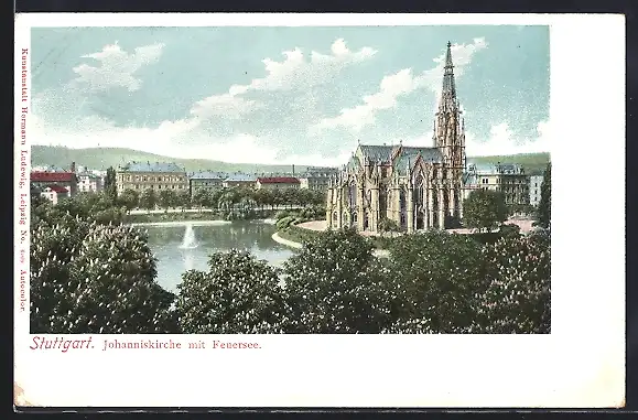 AK Stuttgart, Johanniskirche mit Feuersee