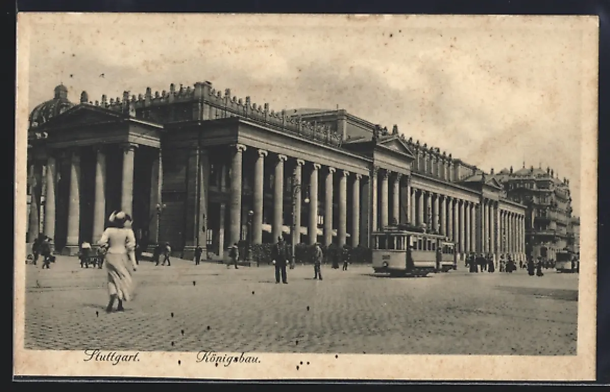 AK Stuttgart, Königsbau mit vorbeifahrender Strassenbahn