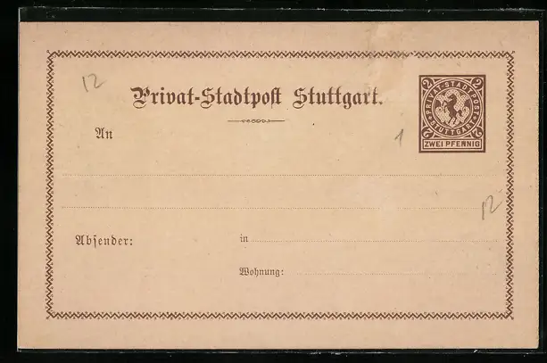 AK Stuttgart, Private Stadtpost, 2 Pfg.
