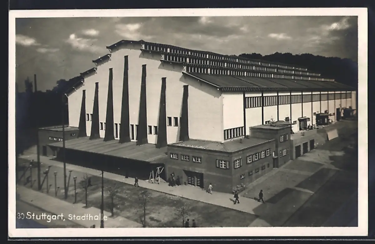 AK Stuttgart, Stadthalle mit Strassenpartie
