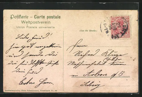 alte Ansichtskarte, gelaufen 1906, guter Zustand