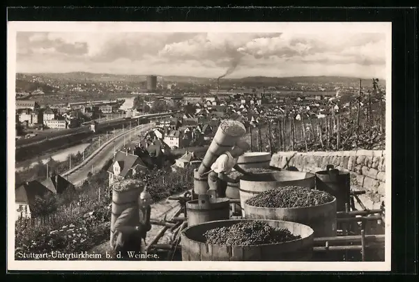 AK Stuttgart-Untertürkheim, Männer bei der Weinlese