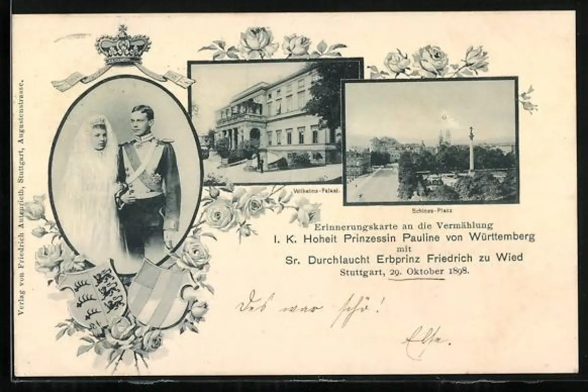 AK Stuttgart, Vermählung I. K. Hoheit Prinzessin Pauline von Württemberg mit Sr. Durchlaucht Erbprinz Friedrich zu Wied