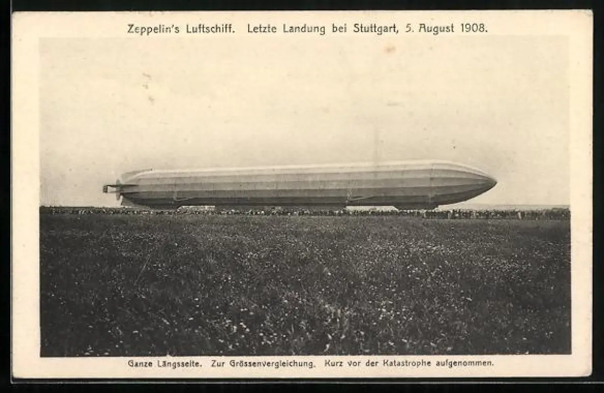 AK Stuttgart, Zeppelin`s Luftschiff bei der letzten Landung 1908