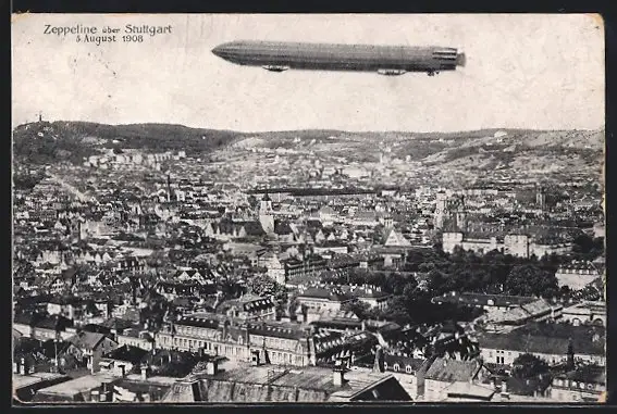 AK Stuttgart, Zeppelin über der Stadt 1908