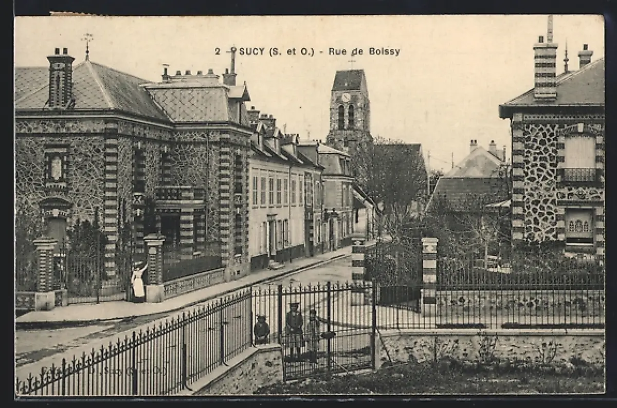 AK Sucy, Rue de Boissy avec vue sur les bâtiments et le clocher au fond