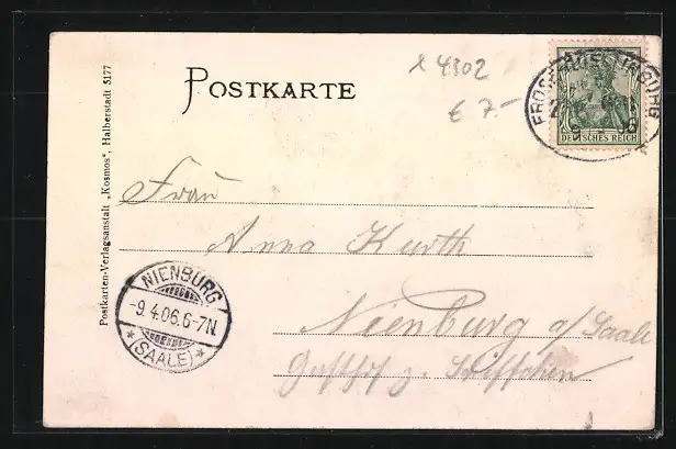 alte Ansichtskarte, gelaufen 1906, Einriss re. oben, guter Zustand