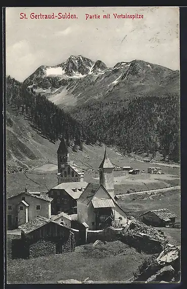 AK Sulden, Ortsansicht nit St. Gertraud mit Vertainspitze