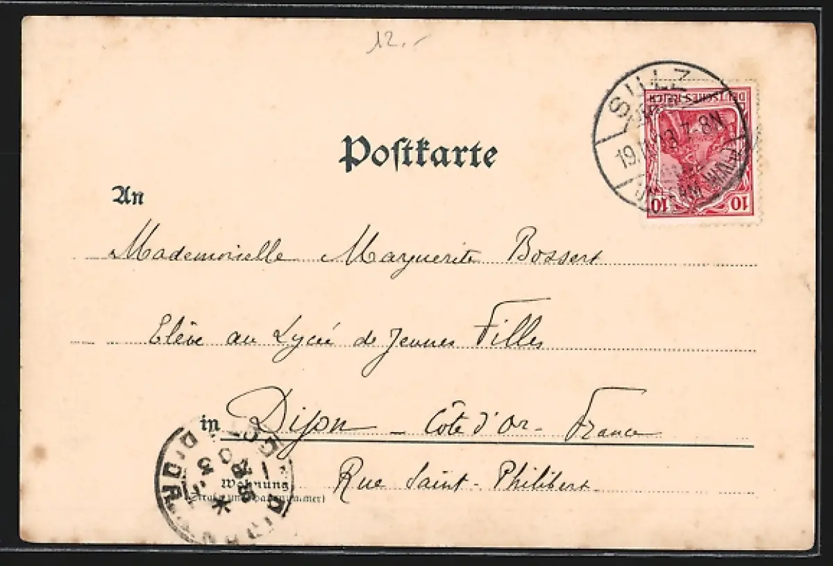 alte Ansichtskarte, gelaufen 1903, Stempelspur, guter Zustand