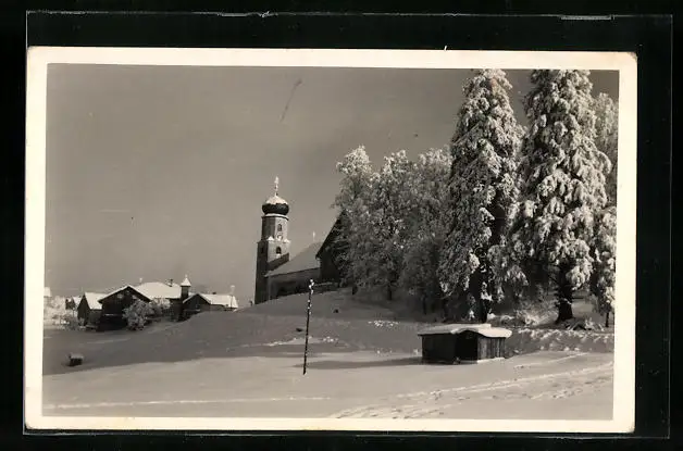 AK Sulzberg, Teilansicht des verschneiten Ortes