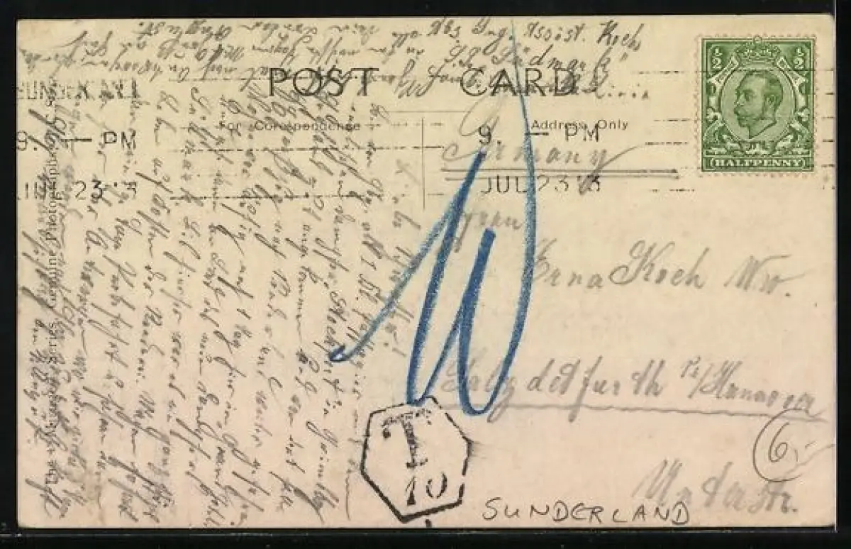 gelaufen 1923, Eckknicke li. unten u. re. oben, guter Zustand