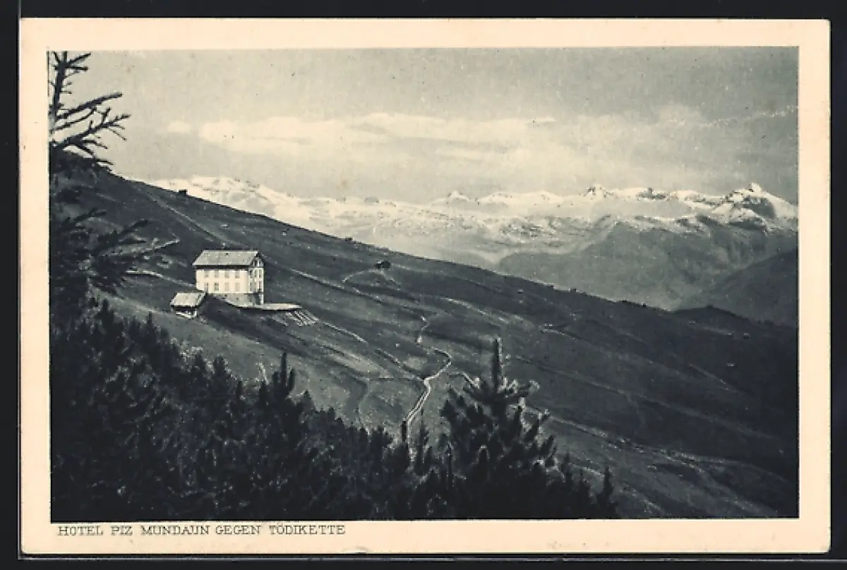 AK Surcuolm, Hotel Piz Mundaun gegen Tödikette