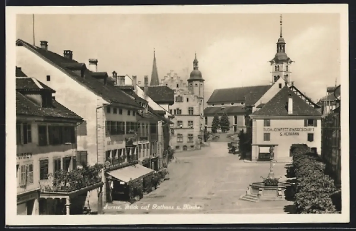 AK Sursee, Blick auf Rathaus und Kirche