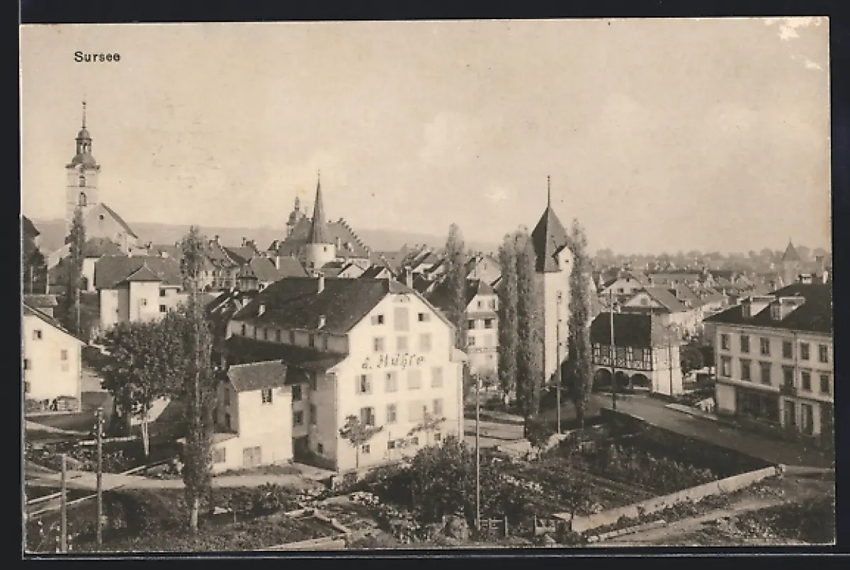 AK Sursee, Strassenpartie mit Gasthof a. Mühle