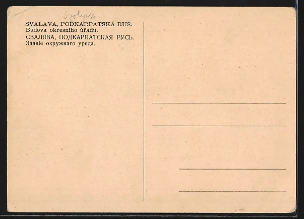 AK Svalava, Podkarpatská Rus., Budova okresního úradu