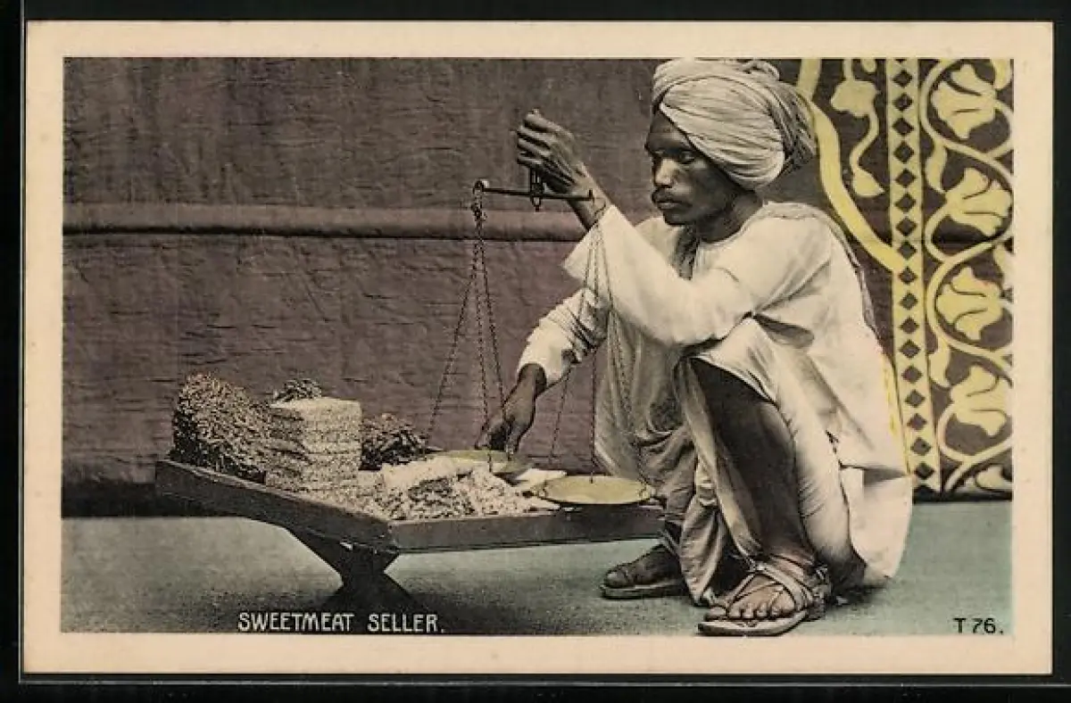 AK Sweetmeat Seller, Indischer Händler mit Waage