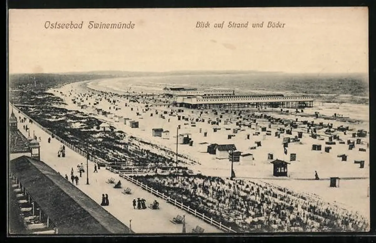 AK Swinemünde, Blick auf Strand & Bäder