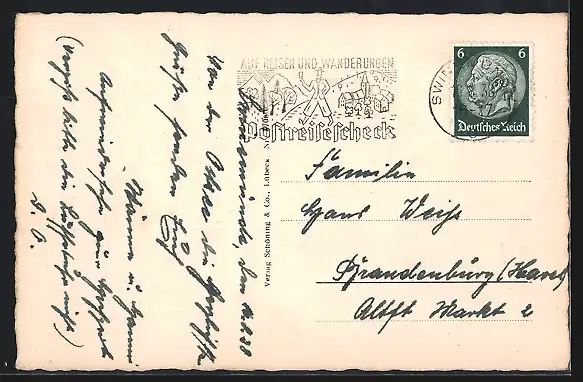 alte Ansichtskarte, gelaufen 1938, Abriebspuren oben, guter Zustand