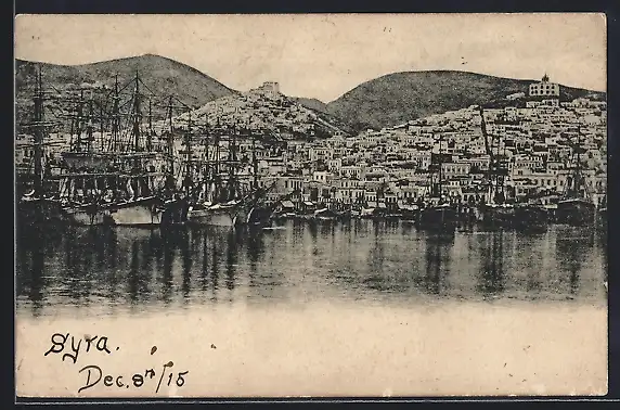 AK Syra, Blick zum Ort mit Hafen