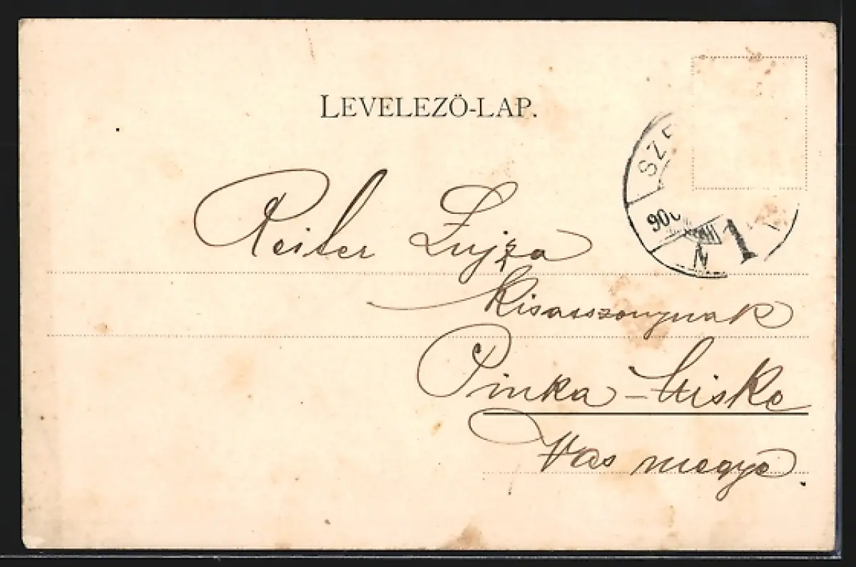 gelaufen 1900, Briefmarke entfernt, rückseitig Oberflächenschaden, Eckknick li. oben, guter Zustand