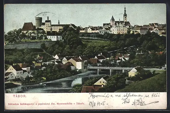 alte Ansichtskarte, gelaufen 1905, Briefmarke entfernt, rückseitig Oberflächenschaden, Bugspuren li. oben, guter Zustand