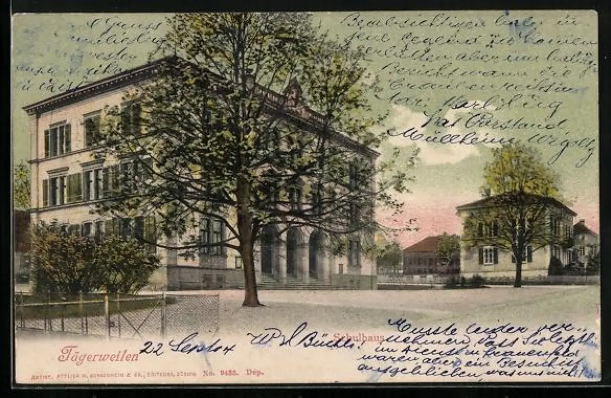 AK Tägerwilen, Schulhaus mit Strassenpartie