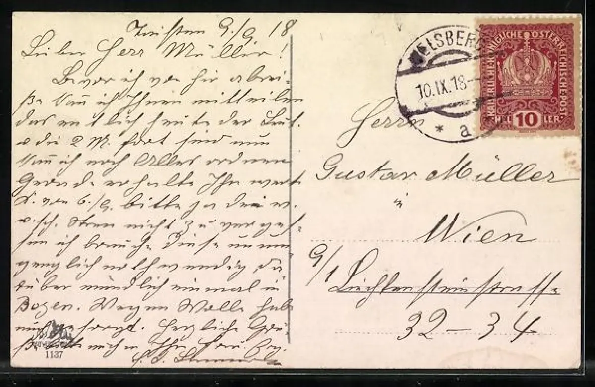 gelaufen 1918, guter Zustand