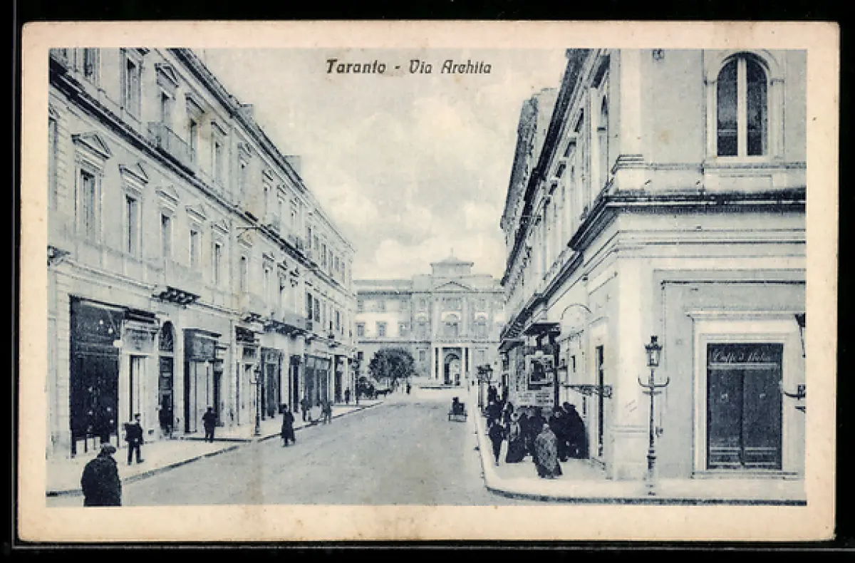 AK Taranto, Via Archita con passanti e edifici storici