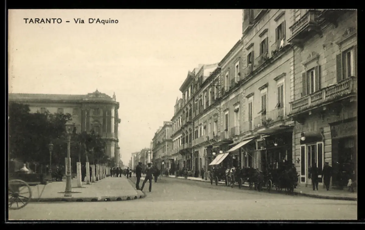 AK Taranto, Via D`Aquino con edifici storici e passanti