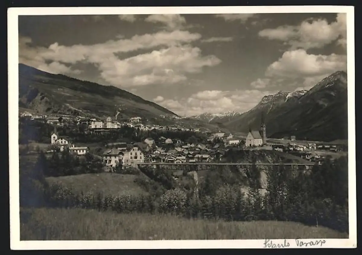 AK Tarasp /Schuls, Ortsansicht mit Brücke und Kirche