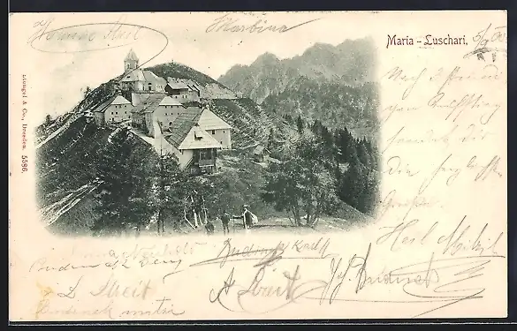 AK Tarvis, Maria-Luschari, Ortsansicht mit Kirche