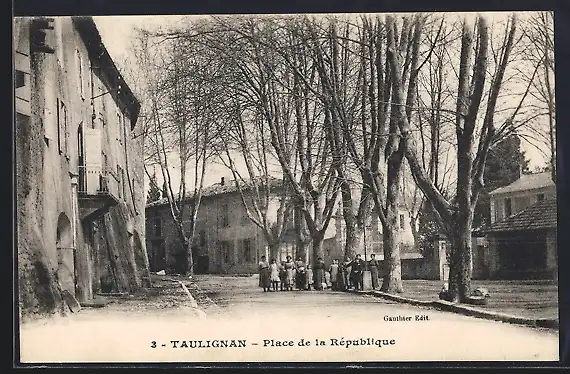 AK Taulignan, Place de la République avec des arbres et des habitants