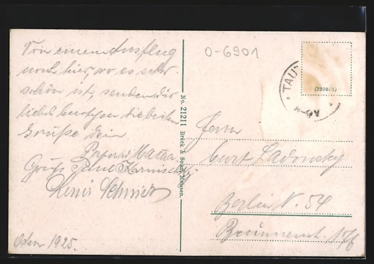 alte Ansichtskarte, gelaufen, Briefmarke entfernt, guter Zustand