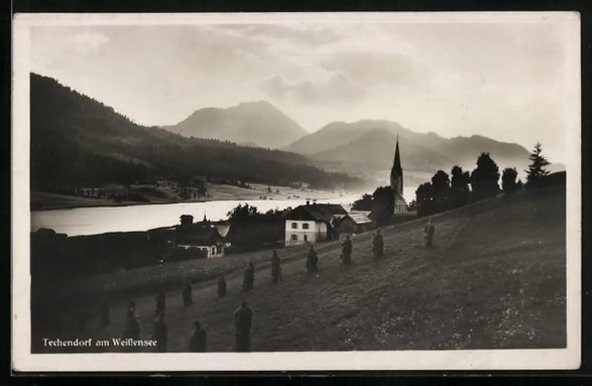 AK Techendorf am Weissensee, Ortspanorama mit Wasserblick