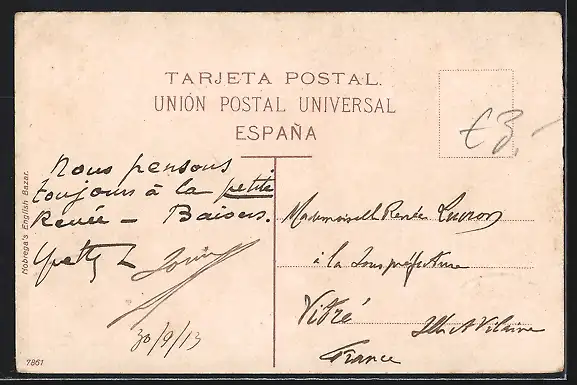 alte Ansichtskarte, gelaufen, Eckknicke oben, Bugspur re. oben, guter Zustand