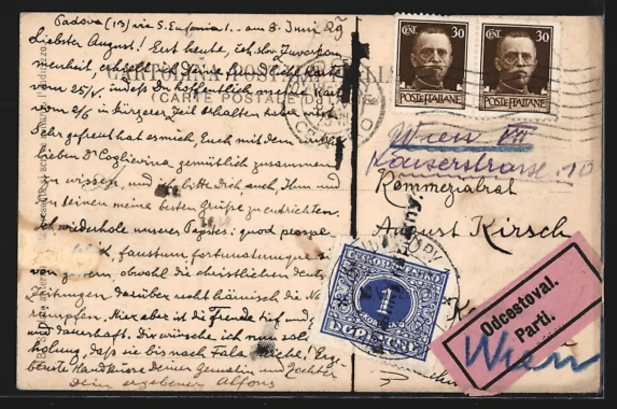 gelaufen 1929, rückseitig Klebe- und Papierreste, guter Zustand